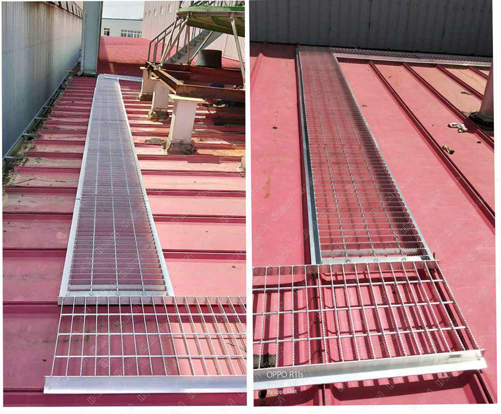 现代大型建筑,大多采用铝或钢的波纹屋面板,往往不适合人的直接行走,必须设计有人行走道,以往的屋面走道一般采用碳钢或不锈钢材料,重量大增加了屋面的荷载,而且要么昂贵,要么需要定期维护。
